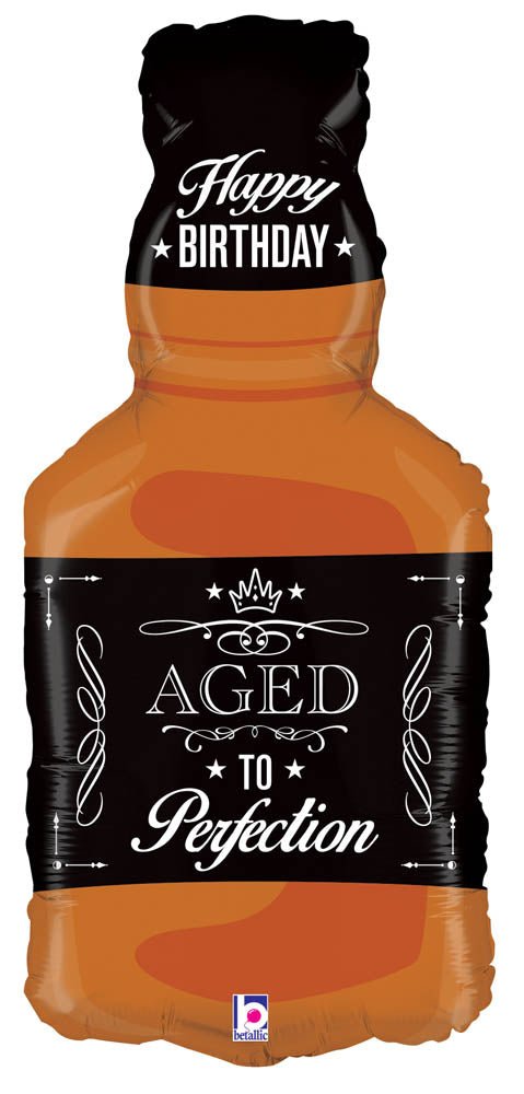 Aged to Perfection Whiskey Bottle Birthday Balloon 34"