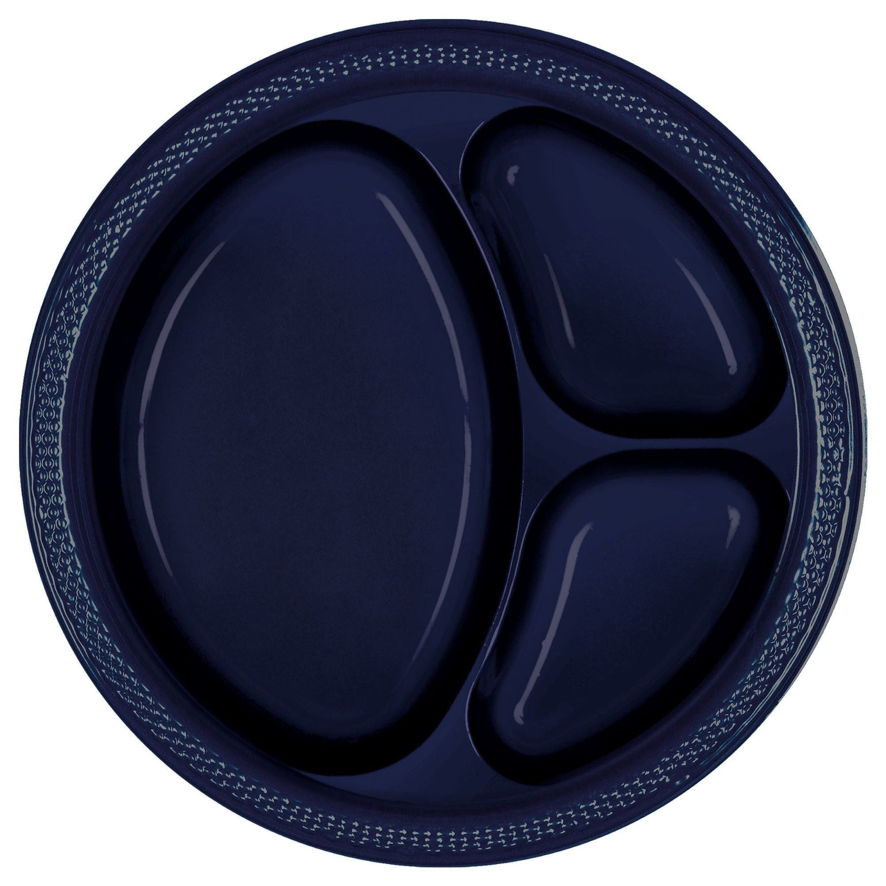 The best way to keep your meal colorful and organized is with our Navy Plastic Divided Dinner Plates! These plastic divided dinner plates feature three separate food sections, making them great for buffets! Stock up your party with black divided dinner plates. They're perfect for parties any you just throw them away when you're done.