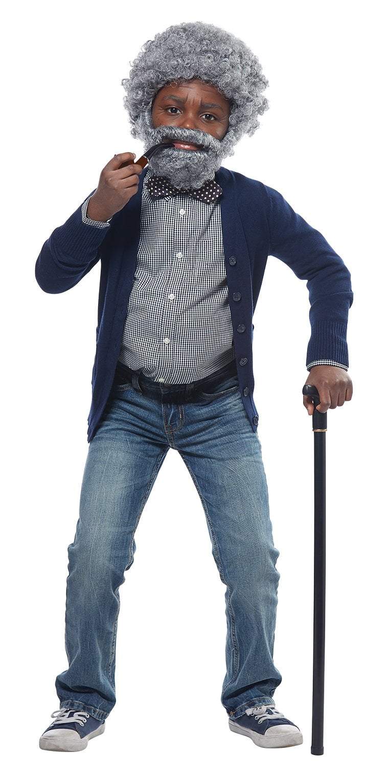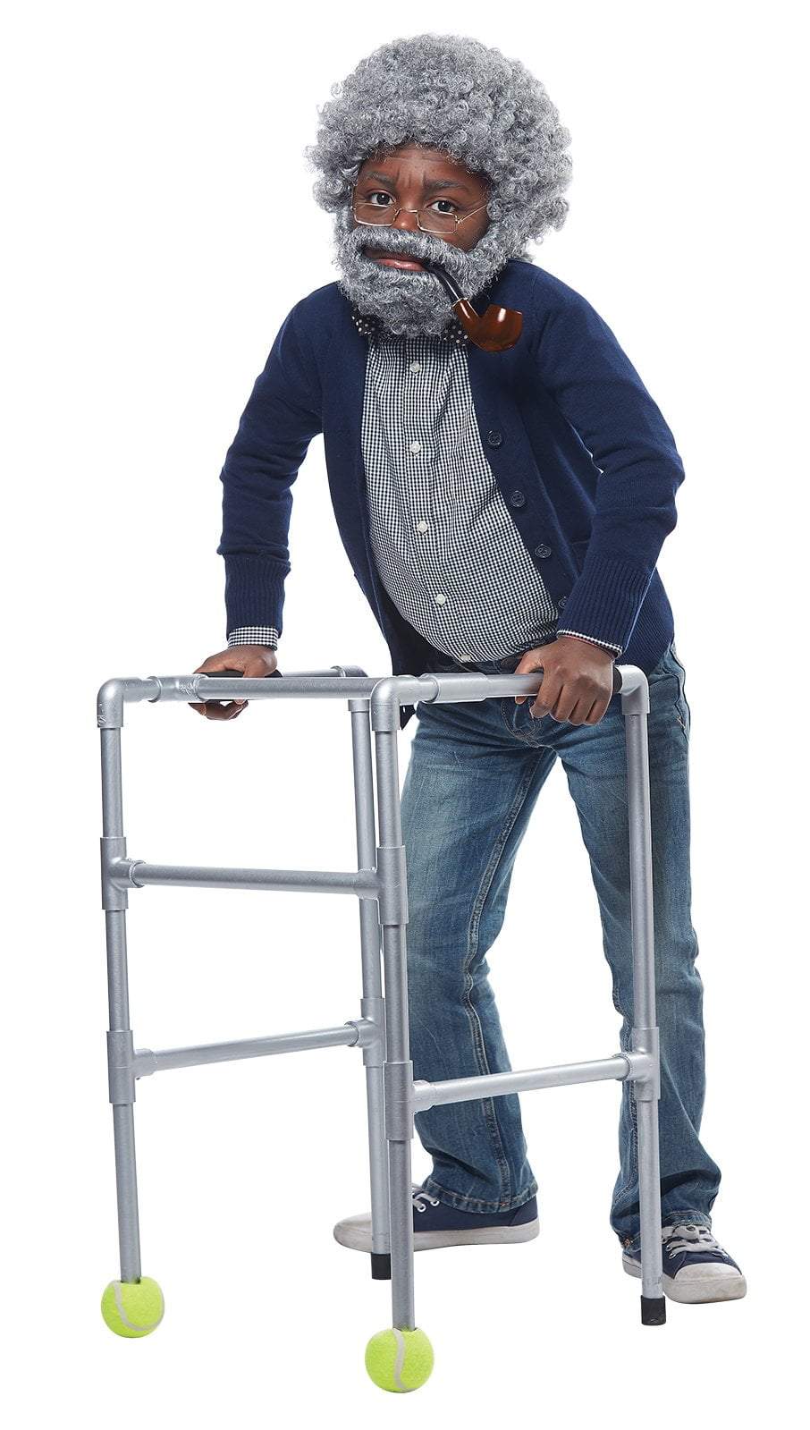 Product Description: You're getting real big there, kid! The Grandpa kit comes with a wig, a beard and goatee piece with ear loops and a prop pipe. Perfect for the 100th Day of School.
