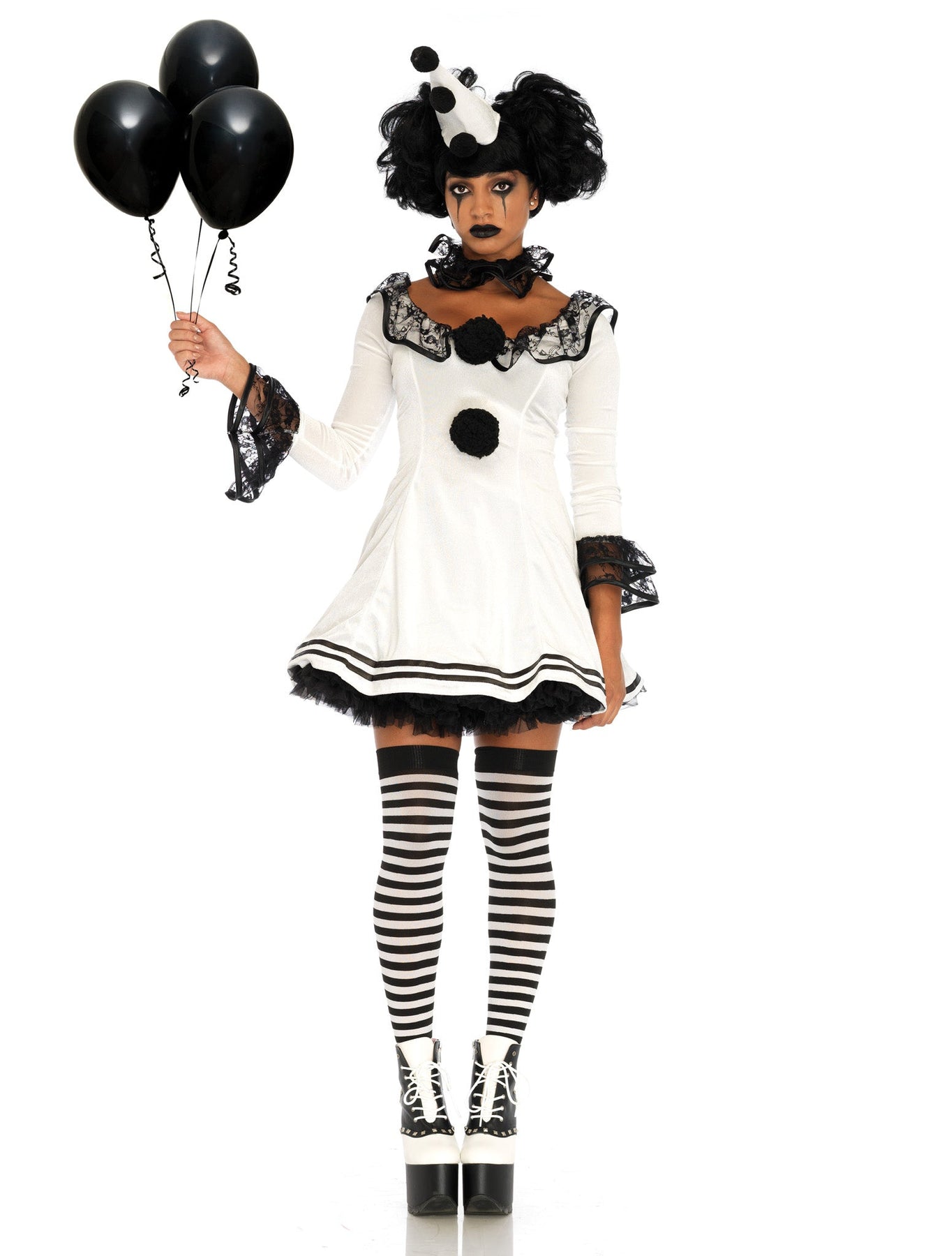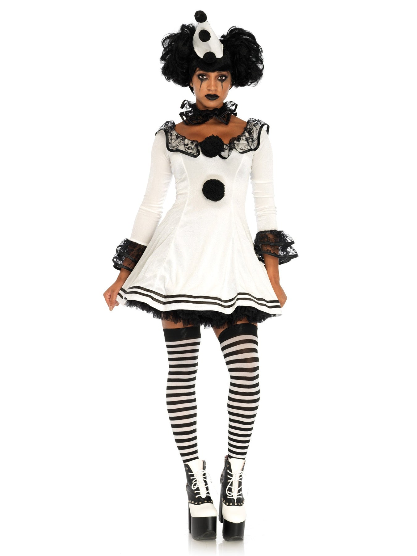 Sad Clowns don't have to be a creepy thing. Make it a cute one in Leg Avenue's Pierrot Clown costume. Without any obnoxious colors you can keep the audience more focused on the quality of your act. The french clown lace details and pom poms will be too cute to pass up.