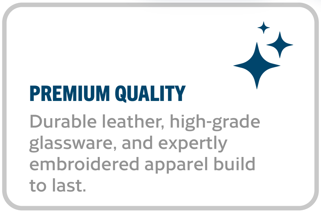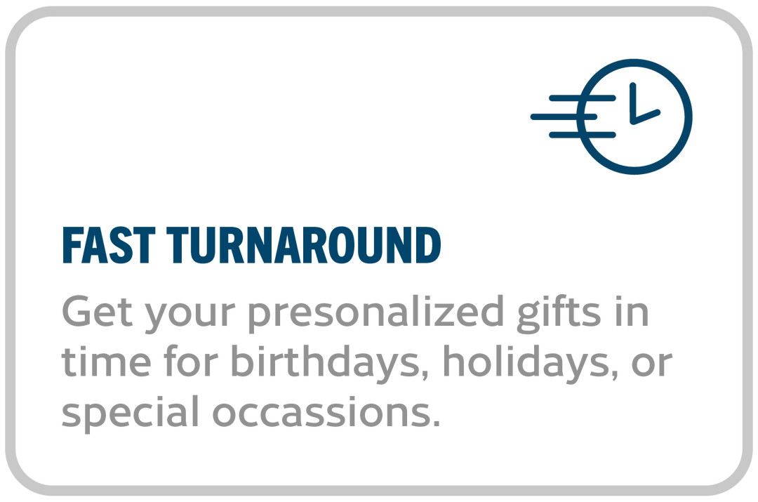 Design unique leather gifts, glassware, and embroidered items for birthdays, Mother’s Day, Father’s Day, and the holidays. Let our in-house graphic designers bring your vision to life!