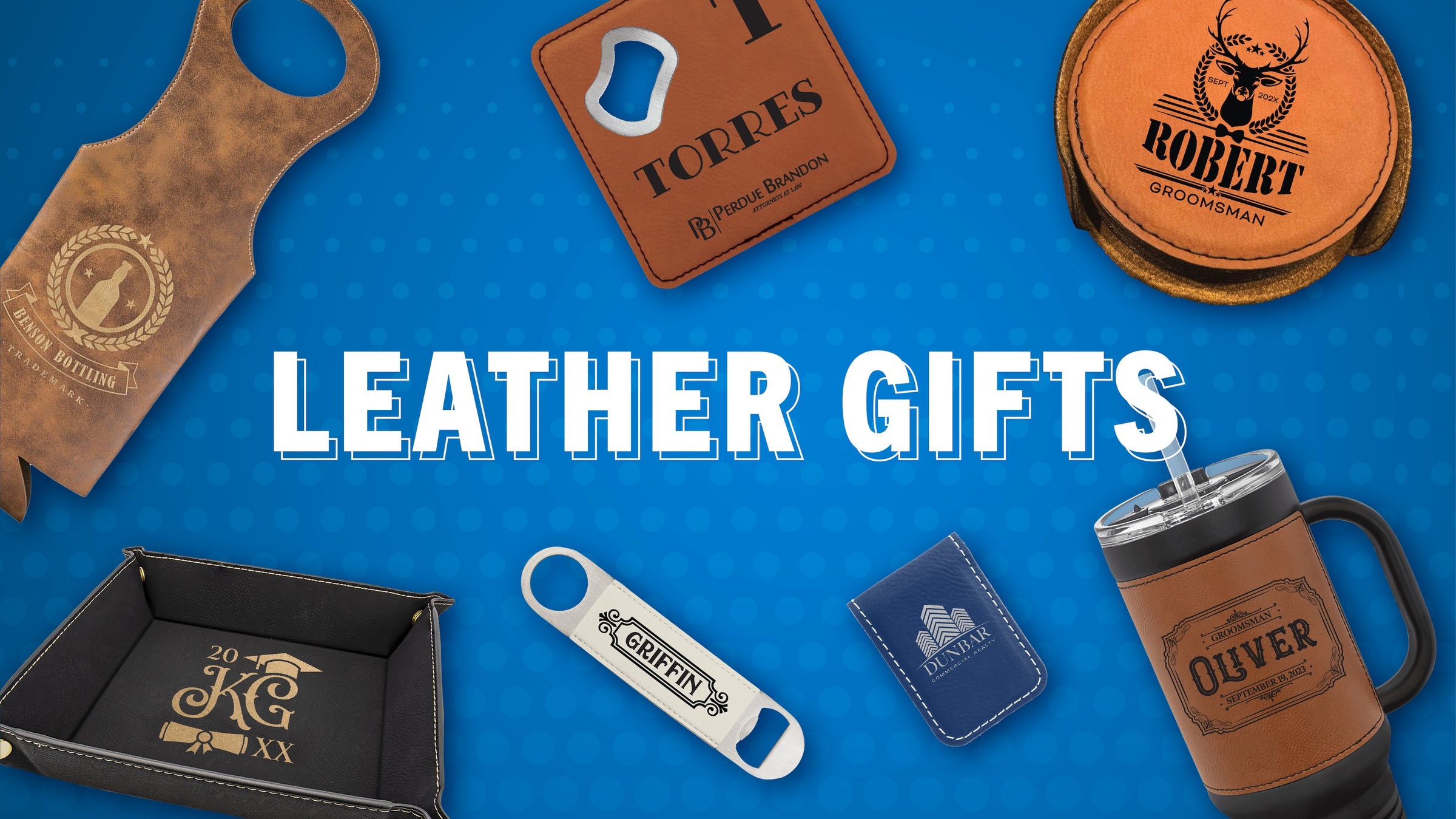 Design unique leather gifts for birthdays, Mother’s Day, Father’s Day, and the holidays. Let our in-house graphic designers bring your vision to life!